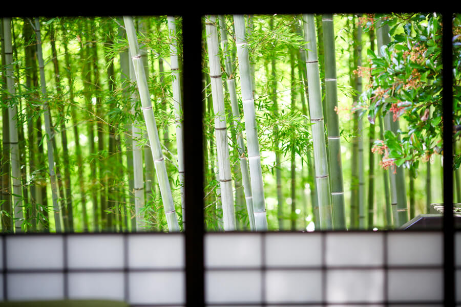 京都の世界遺産、上賀茂神社からほど近くに位置する愛染倉。3000坪の広大な庭園、京都らしい情緒溢れる瑞々しい竹林は愛染倉ならではです。